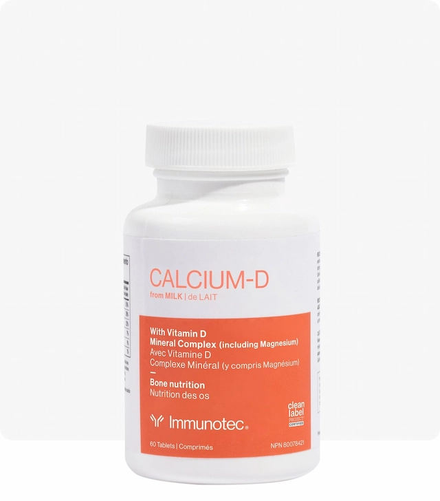 Calcium-D From Milk Bone Supplement by Immunotec delivers milk-sourced calcium โ the most bioavailable form available โ in a complete mineral complex including magnesium, phosphorus, potassium, iron, copper, and zinc formulated to mirror the natural mineral ratio found in human bone. Includes 400 IU of vitamin D per serving to maximize calcium absorption. Supports bone density, dental health, muscle function, and nerve signaling. 60 tablets โ 30-day supply. Available worldwide.